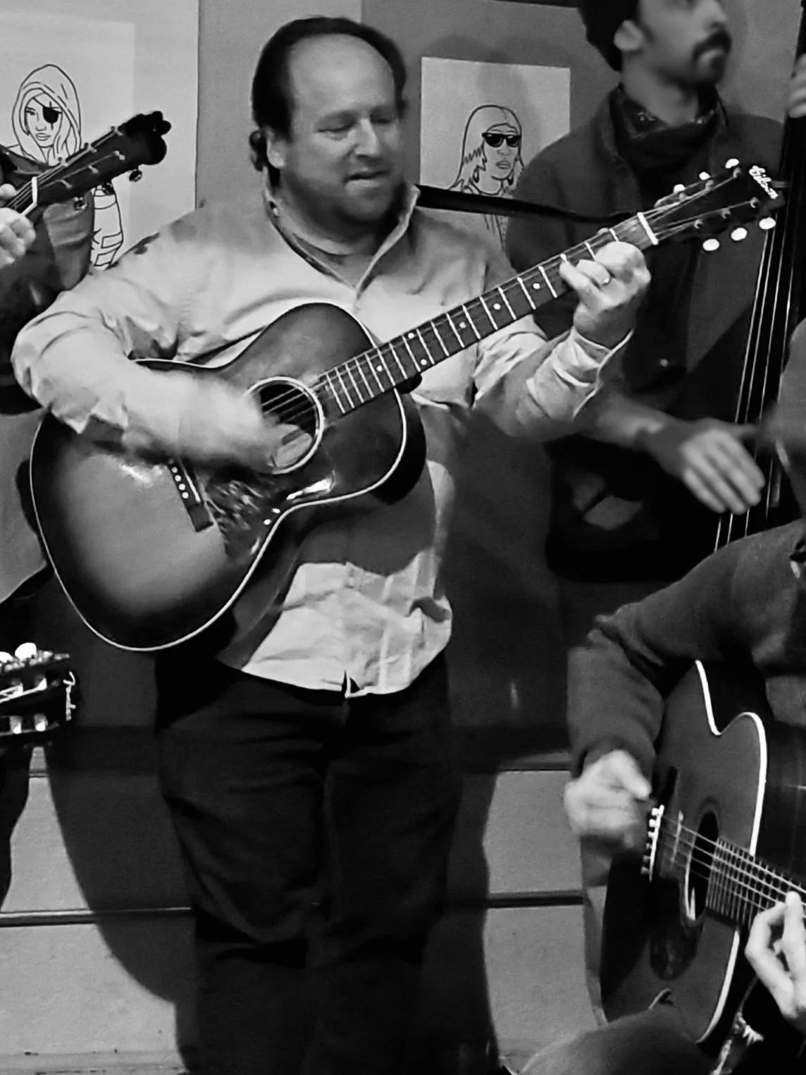 Dan’s journey in music started with folk guitar lessons at the tender age of 12. His first G-run was at summer camp, where a buddy introduced him to - what else? - “Rolling in My Sweet Baby’s Arms.” His first fiddle tune was, you guessed it, “Salt Creek,” copped from one of his parents’ Doc Watson albums. Fast forward several decades, and his first bluegrass jams were in and around NYC in 2016. A fascination with the bluegrass ensemble quickly took hold, and with it, the need to play and sing these songs. Things he’d always gravitated towards - cross picking, singing tenor - had suddenly landed in their natural habitat. So now, as Dan would say, there’s no turning back. (Well, actually what Dan would say is, “I don’t need no stinkin’ pickups!”)